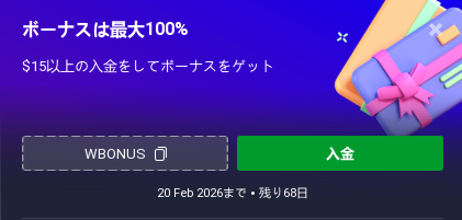 | 1万円 | 10% | 入金+ボーナス額の15倍の取引達成 |