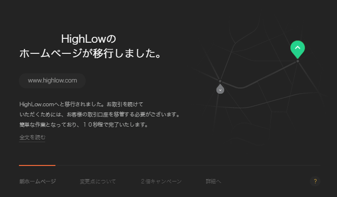 ハイローオーストラリアの運営会社であるHighLow Markets Pty Ltdがオーストラリア居住以外での金融サービスを終了する事に決定したという理由から、運営体制の変更が行われました。 今後は、オーストラリア向けのサービスはいままで通りHighLow Markets Pty Ltdが、日本も含め、オーストラリア以外の利用者に関しては、マーシャル諸島共和国の事業会社法の規定のもと認可を受けて […]