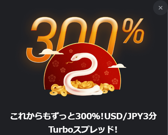 USD/JPY 3分ターボスプレッドが300%に!