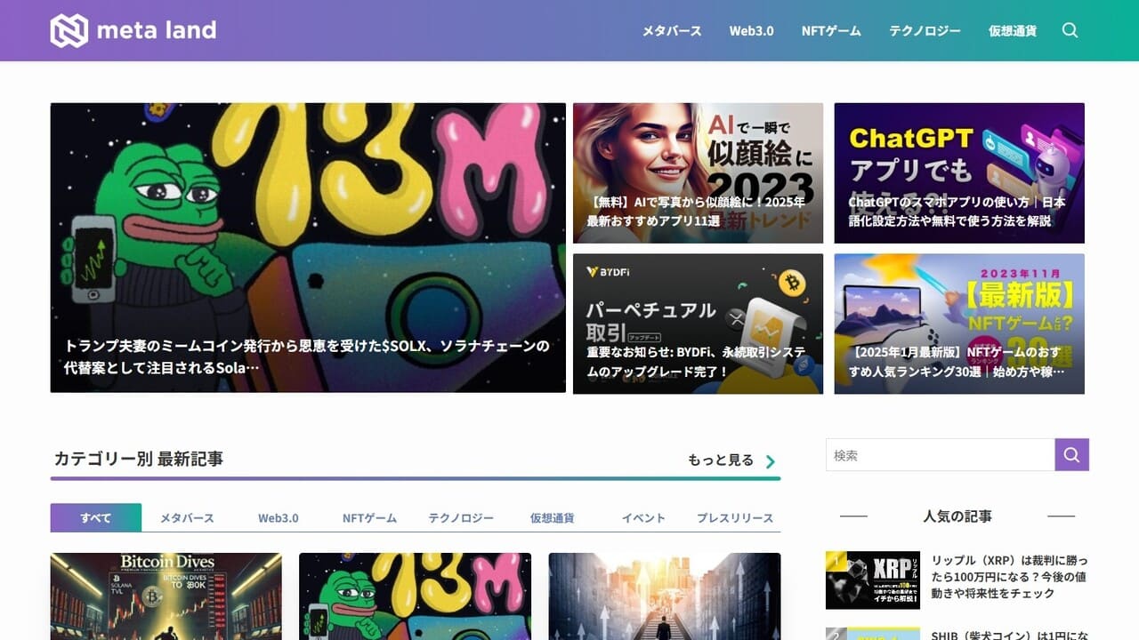 Web3.0メディア「meta land」は、メタバース、NFTゲーム、テクノロジー、仮想通貨に関する最新情報を提供するメディアサイトです。
